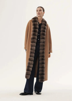 Ausverkauft - Kaschmirmantel in Kameltonfarbe mit Zobelfellbesatz