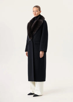 Ausverkauft - Schwarzes Kaschmirmantel mit Chinchilla-Pelzkragen
