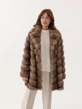 Ausverkauft - Kurzer Mantel aus Marderpelz mit Stehkragen