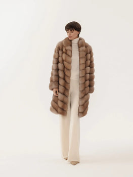 Ausverkauft - Pelzmantel mit abgerundeten Seiten aus Marderfell
