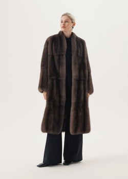 Ausverkauft - Zobelpelzmantel im Farbton Dark Russo mit voluminösem, klassischem Kragen