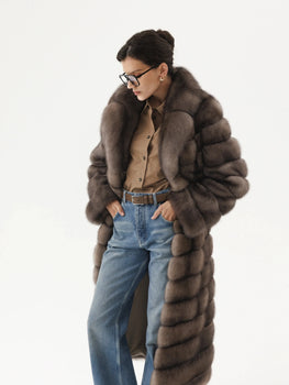 - Langer Zobelpelzmantel in Kaffeefarbe