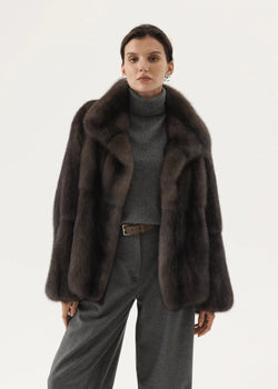 Ausverkauft - Kurzer Pelzmantel aus Zobelfell mit eingesetzten Ärmeln
