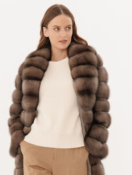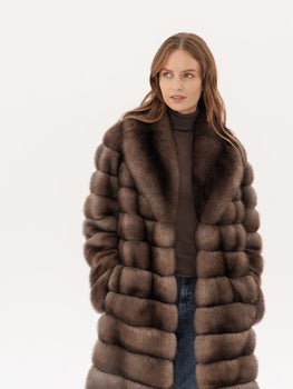 Ausverkauft - Pelzmantel aus wertvollem Barguzin-Zobelfell mit horizontalen Schnitt und Schalkragen