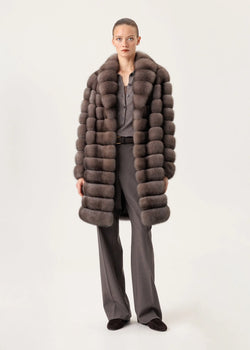 Ausverkauft - Zobelpelzmantel im Farbton Dark Russo mit voluminösem, klassischem Kragen