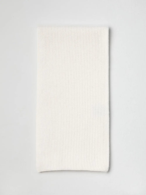 Ein kuscheliger, gestrickter Schal aus Kaschmir in einem dezenten Ice White.